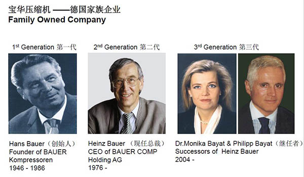 “寶華”代表著在工程機械領(lǐng)域的品質(zhì)和傳統(tǒng),早期歷史可追溯到1888年由 Johann Bauer 在巴伐利亞小鎮(zhèn)阿爾斯托夫建立的農(nóng)業(yè)機械工廠,而在1946年由他的兒子Hans Bauer開辦的寶華壓縮機書寫了戰(zhàn)后德國工業(yè)成功的輝煌篇章。寶華壓縮機由低壓壓縮機起步并逐步開發(fā)高壓壓縮機領(lǐng)域的產(chǎn)品和應(yīng)用,到20世紀60年代,成為高壓呼吸空氣壓縮機的企業(yè)。