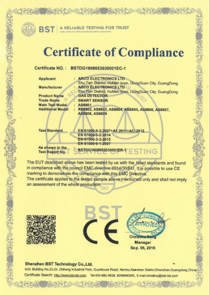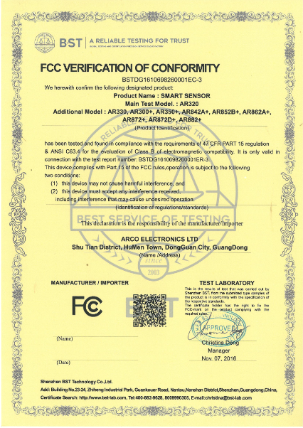 紅外測溫儀FCC認證 AS88系列氣體CE認證