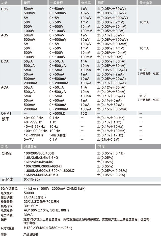 ■ 由于內置了6種功能校準(DCV,ACV,DCA,ACA,OHM,Hz),可以廣泛應用于萬用表,功率計,回路計,電阻計的校準和維護