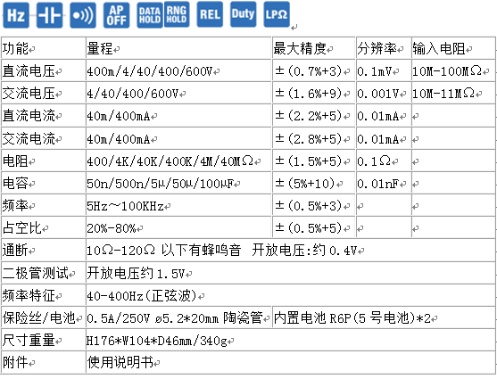 ■ 具有交直流電流、電壓、電阻、頻率、占空比、導通二極管及頻率檢測