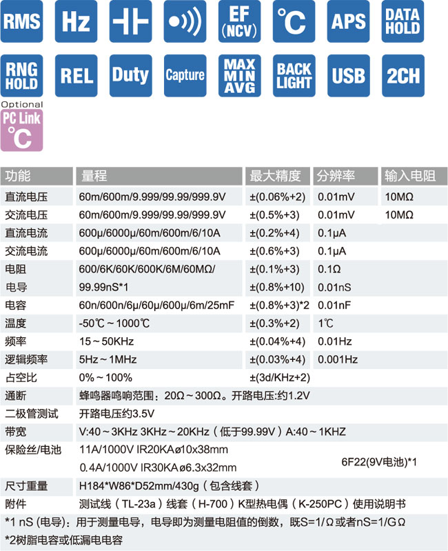■ 標(biāo)配鍍金表筆,防腐、防接觸不良,提高測(cè)量的精度