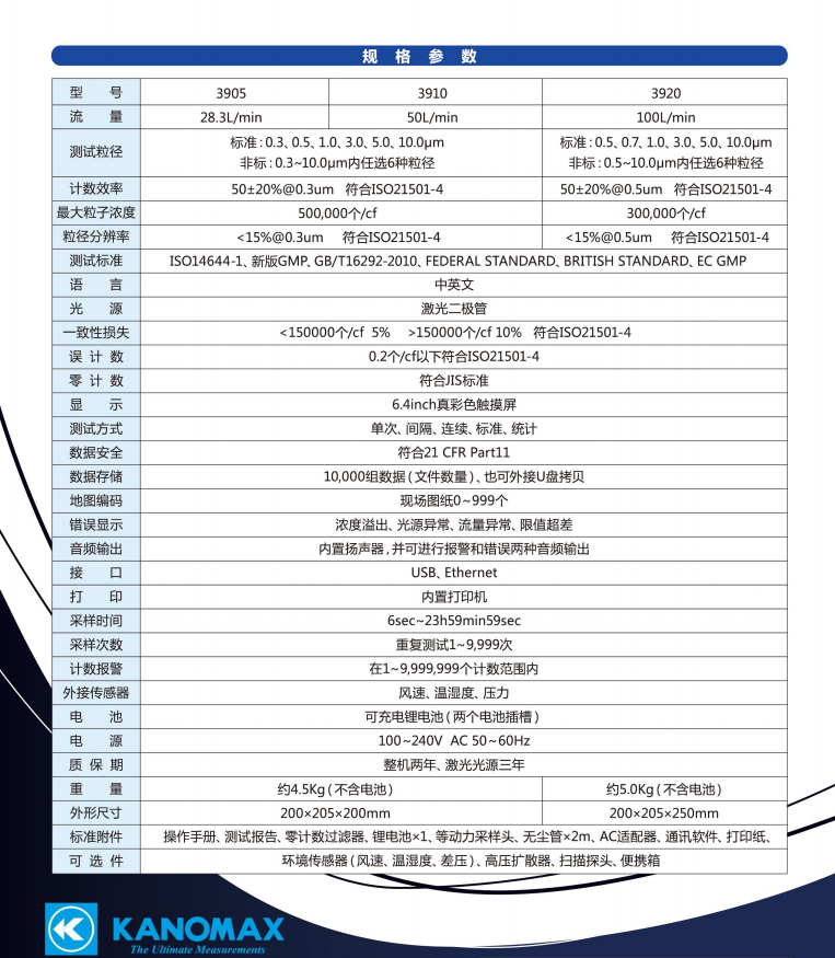 6種粒徑同時(shí)測(cè)試(0.5 、0.7、 1.0、 3.0、 5.0、10.0μm)
