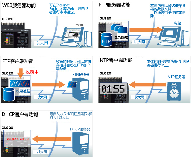 多路存儲(chǔ)記錄儀GL820具有多種網(wǎng)絡(luò)形式