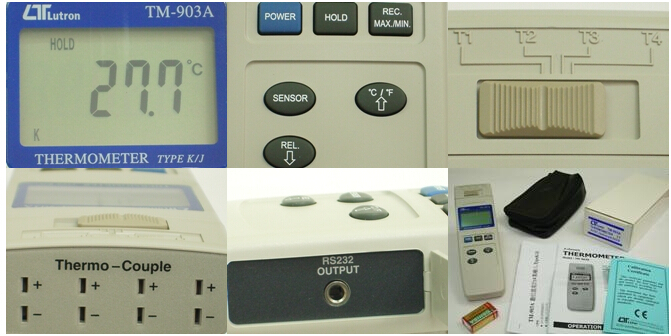 TM-903A 溫度計(jì)(四通道) 特點(diǎn) 1.溫度范圍: Type K: -100.0 1300.0 Type J: -100.0 1150.0 2.4個(gè)溫度測(cè)量點(diǎn)T1、T2、T3、T4 3.精確度: 0.5% 4.攝氏(℃) / 華氏(℉)單位選擇 5.具讀值鎖定及記錄最大值/最小值 比較值(相對(duì)值)測(cè)量的功能 6.具有比較值(相對(duì)值) 7.RS-232/USB連接接口(軟件選購) 8.SIZE:210x68x30mm 9.四點(diǎn)溫度輸入溫度計(jì),手動(dòng)切換單點(diǎn)顯示 計(jì)算機(jī)聯(lián)機(jī)可記錄該點(diǎn)數(shù)據(jù) |