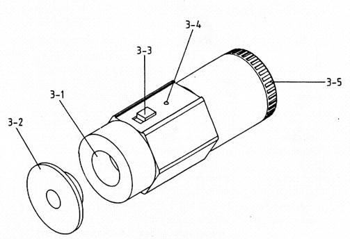 3-1 麥克風接合面(一英吋) 3-2 0.5英吋麥克風轉(zhuǎn)接頭 3-3 電源開關(guān)/94dB/114dB檔位開關(guān) | 3-4 電源指示燈及電力測不足指示 3-5 電池室/蓋 |