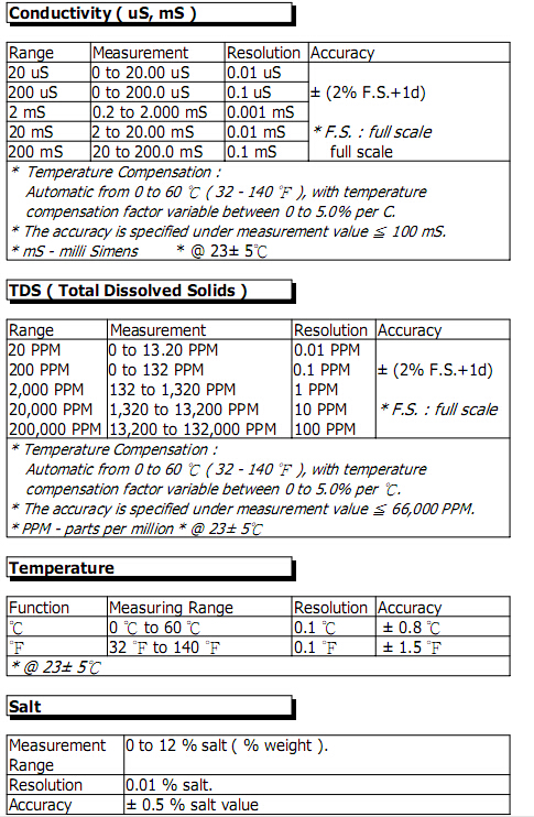 *多用途操作一米:電導(dǎo)率、TDS(溶解性總固體),鹽的測(cè)定。
