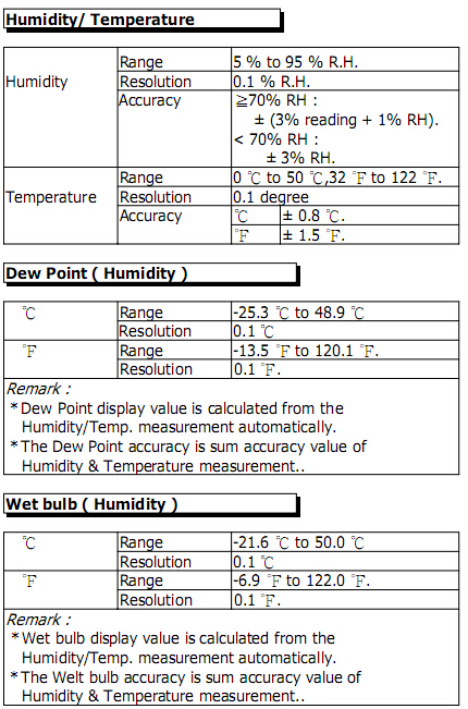 *濕度/溫度,露點(diǎn)(濕度),濕球(濕度),K型/ J溫度計,4 kindsmeasurement合并成一個表,智能專業(yè)。