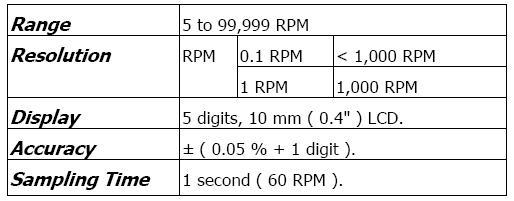 光電式 5-99,999RPM ±(0.05%+1d)