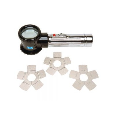 比較器和Elcometer 127 照明放大鏡配合使用,每個比較器中央有個孔,可做清楚的目視比較。