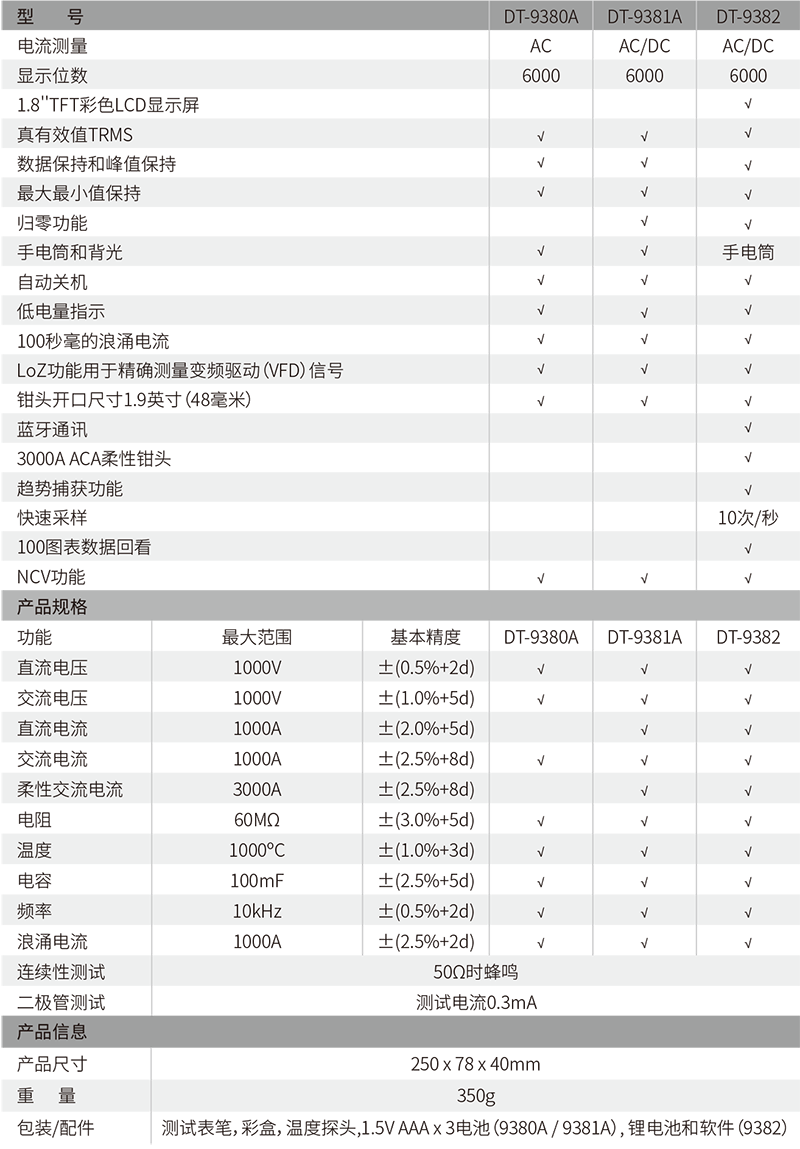 支持柔性線圈電流探頭,交流電流可擴(kuò)展至3000A,在狹小空間也能輕易測(cè)量(DT-9382)