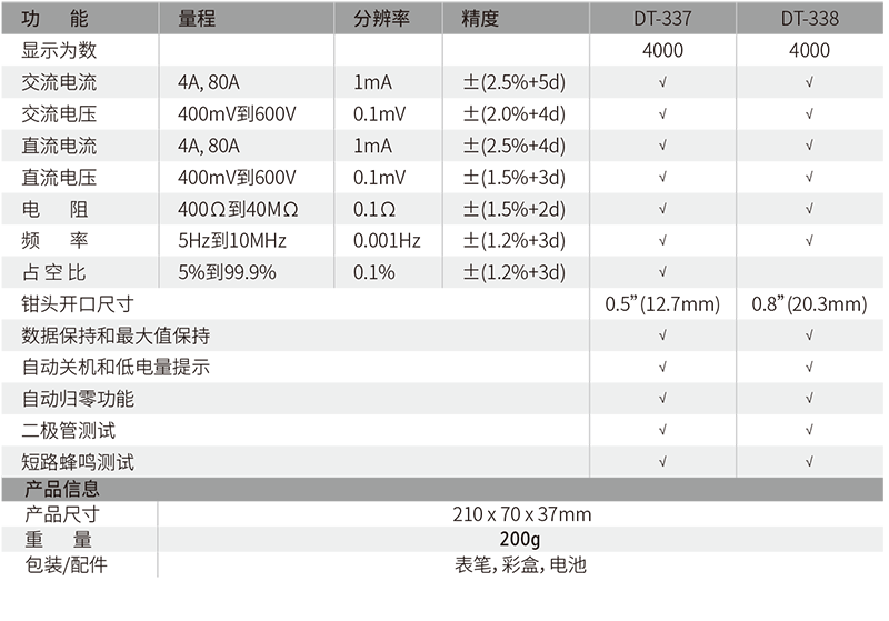 真有效值TRMS,可準確測量非線性負載電路指標(DT-338)
