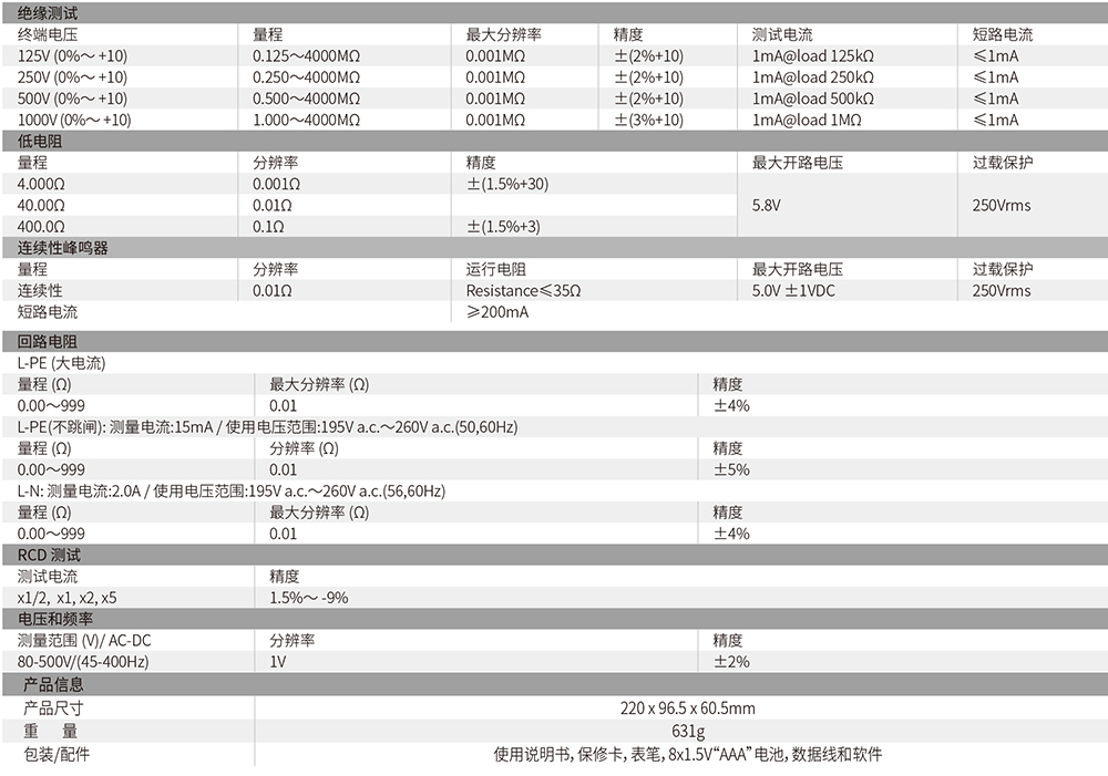 快速高效測試:絕緣電阻、低電阻、接地電阻、電壓、RCD、PFG和PSC