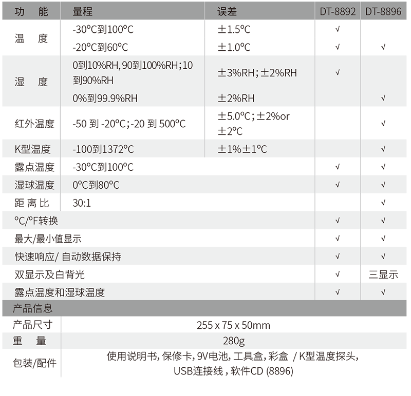】自行對信息/圖片/參數(shù)等的真實(shí)性、準(zhǔn)確性和合法性負(fù)責(zé),本平臺(本網(wǎng)站)僅提供展示服務(wù),請謹(jǐn)慎交易,因交易而產(chǎn)生的法律關(guān)系及法律糾紛由您自行協(xié)商解決,本平臺(本網(wǎng)站)對此不承擔(dān)任何責(zé)任。您在本網(wǎng)頁可以瀏覽【華盛昌DT-8896專業(yè)溫濕度測量儀】有關(guān)的信息/圖片/價(jià)格等及提供