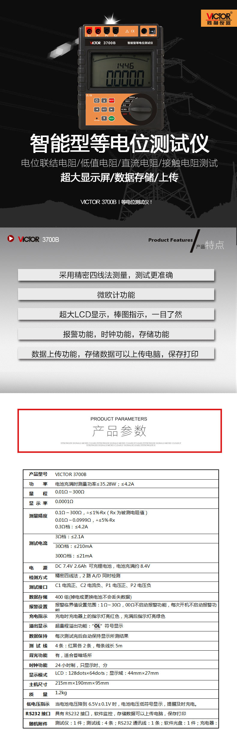 本網(wǎng)頁(yè)所展示的有關(guān)【VICTOR3700B智能型等電位測(cè)試儀】的信息/圖片/參數(shù)等由的會(huì)員【勝利victor-深圳柏萊科技有限公司 】提供,由柏萊儀器網(wǎng)-專業(yè)銷售儀器儀表服務(wù)商-深圳柏萊科技有限公司會(huì)員【勝利victor-深圳柏萊科技有限公司 】自行對(duì)信息/圖片/參數(shù)等的真實(shí)性、準(zhǔn)確性和合法性負(fù)責(zé),本平臺(tái)(本網(wǎng)站)僅提供展示服務(wù),請(qǐng)謹(jǐn)慎交易,因交易而產(chǎn)生的法律關(guān)系及法律糾紛由您自行協(xié)商解決,本平臺(tái)(本網(wǎng)站)對(duì)此不承擔(dān)任何責(zé)任。您在本網(wǎng)頁(yè)可以瀏覽【VICTOR3700B智能型等電位測(cè)試儀】有關(guān)的信息/圖片/價(jià)格等及提供 【VICTOR3700B智能型等電位測(cè)試儀】的商家公司簡(jiǎn)介、聯(lián)系方式等信息。