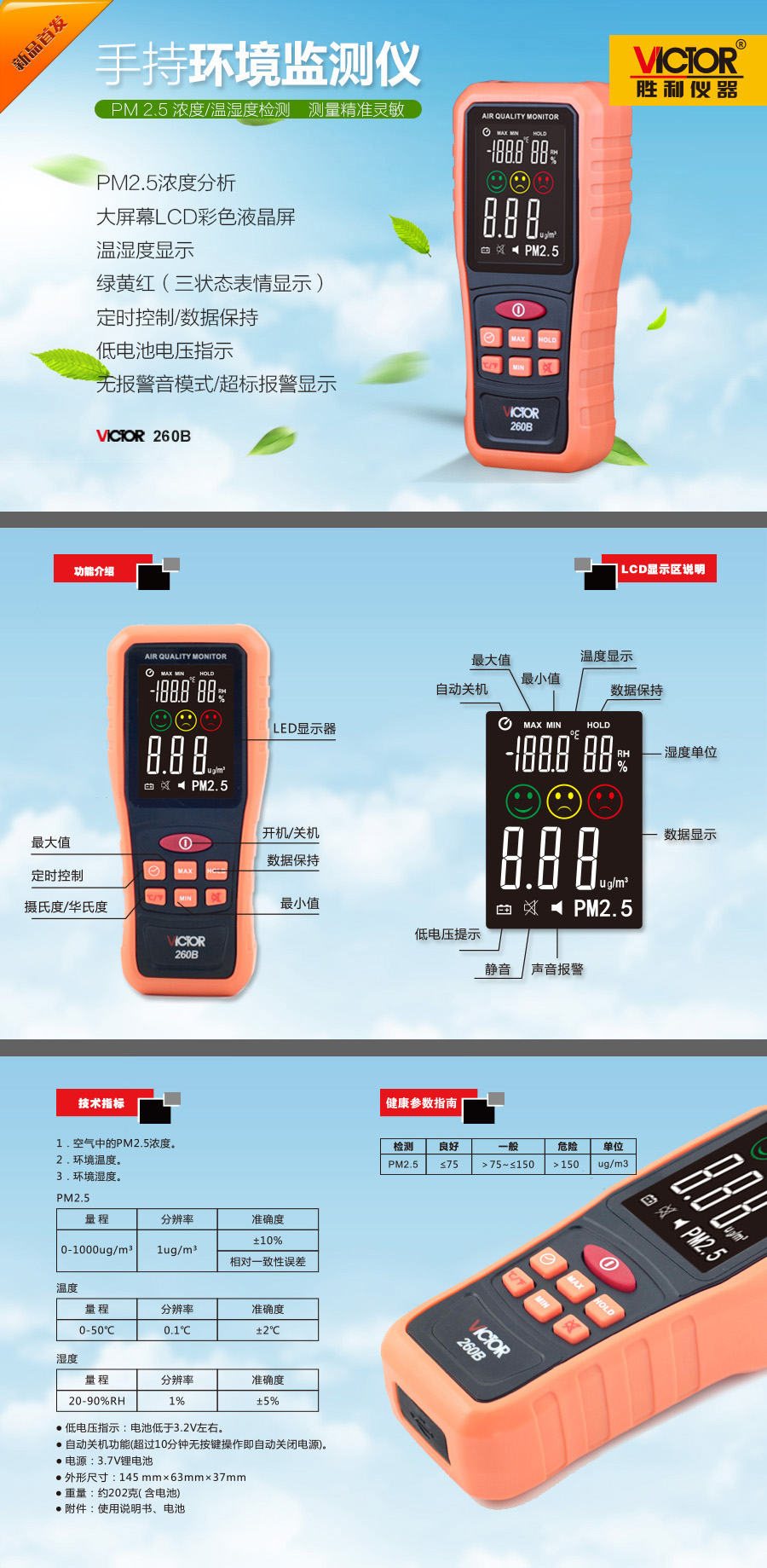 本網(wǎng)頁所展示的有關(guān)【VICTOR 260B手持環(huán)境監(jiān)測(cè)儀PM2.5檢測(cè)】的信息/圖片/參數(shù)等由的會(huì)員【勝利victor-深圳柏萊科技有限公司 】提供,由柏萊儀器網(wǎng)-專業(yè)銷售儀器儀表服務(wù)商-深圳柏萊科技有限公司會(huì)員【勝利victor-深圳柏萊科技有限公司 】自行對(duì)信息/圖片/參數(shù)等的真實(shí)性、準(zhǔn)確性和合法性負(fù)責(zé),本平臺(tái)(本網(wǎng)站)僅提供展示服務(wù),請(qǐng)謹(jǐn)慎交易,因交易而產(chǎn)生的法律關(guān)系及法律糾紛由您自行協(xié)商解決,本平臺(tái)(本網(wǎng)站)對(duì)此不承擔(dān)任何責(zé)任。您在本網(wǎng)頁可以瀏覽【VICTOR 260B手持環(huán)境監(jiān)測(cè)儀PM2.5檢測(cè)】有關(guān)的信息/圖片/價(jià)格等及提供 【VICTOR 260B手持環(huán)境監(jiān)測(cè)儀PM2.5檢測(cè)】的商家公司簡介、聯(lián)系方式等信息。