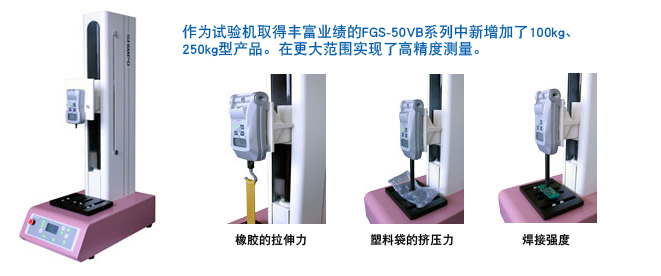 電動(dòng)立式測(cè)力儀試驗(yàn)支架 FGS-VC系列 測(cè)力儀試驗(yàn)支架通過(guò)更換數(shù)字式測(cè)力儀(推拉力計(jì)),即可支持2N~2500N的負(fù)載測(cè)量。采用USB接口,通過(guò)免費(fèi)專用聯(lián)機(jī)軟件"FGT-VC"可以將支架的移動(dòng)距離和負(fù)載,以圖表形式用電腦輕松讀取。 |