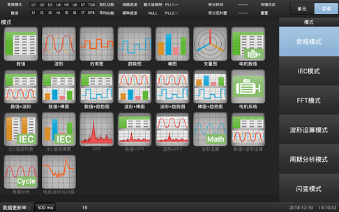 多種數(shù)據(jù)顯示方式包括數(shù)值顯示、波形顯示、效率圖、趨勢圖、棒圖、矢量圖顯示等,組合顯示使得測量結(jié)果更加直觀明了。