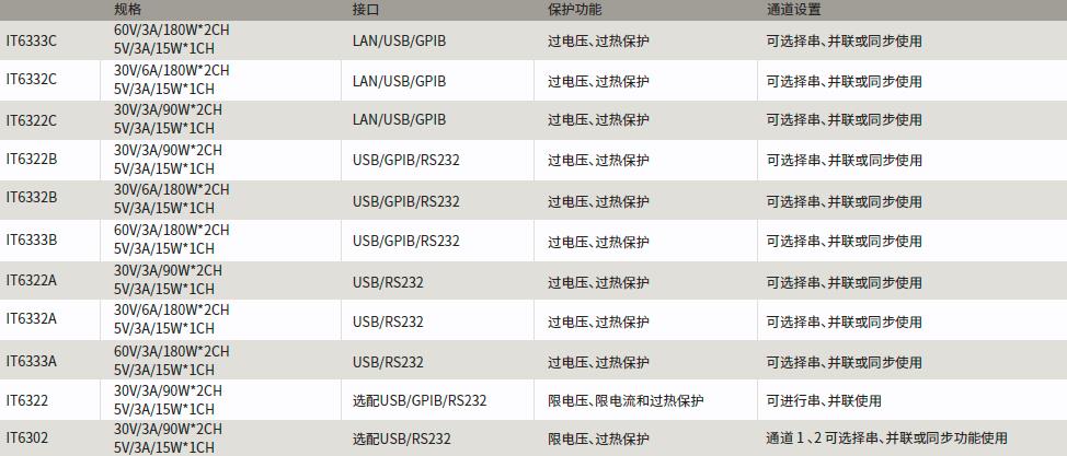 IT6300系列為高性能的可編程三路直流電源,每路輸出電壓和電流均可設(shè)定為從0到最大額定輸出值。該系列提供了通道的串聯(lián)、并聯(lián)以及同步功能,可以給客戶的測試帶來多用途的解決方案。該系列具有1mV/1mA的高分辨率,具有高精度以及高穩(wěn)定性的特征,并且配備了遠端測量的功能,可以使測試更加準確。內(nèi)置的標準的USB /RS232/GPIB 通訊接口,大大提升了通訊速度,并且客戶還可以利用光標調(diào)節(jié)數(shù)字步進值來方便操作。