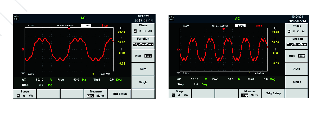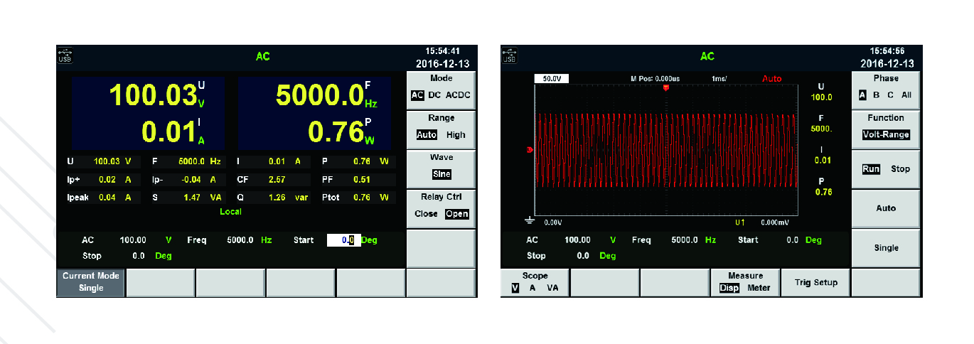 可顯示單機或者并機情況下電壓及電流的實時波型
