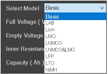 BSS2000系列軟件為用戶內(nèi)建豐富的電池特性曲線庫(kù),使用者僅需要選擇對(duì)應(yīng)的電池類型,配置基本的容量及保護(hù)參數(shù),即可快速生成對(duì)應(yīng)類型的電池特性曲線。BSS2000基礎(chǔ)版軟件提供鋰電池和鉛酸電池類型,BSS2000 Pro及BSS2000M軟件提供高達(dá)8種電池類型曲線,分別是鋰電池,鉛酸電池,磷酸鐵鋰,三元鋰,錳酸鋰,鈦酸鋰,鎳鈷錳酸鋰及鎳氫電池。