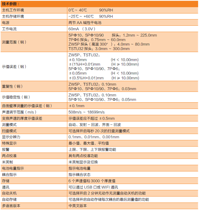 ◆ 可存儲(chǔ)30 個(gè)厚度文件,每個(gè)文件可存儲(chǔ)100 個(gè)厚度值。