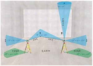 ![]() 角度、距離、傾斜參數(shù)均可校準(zhǔn) | ![]() 校準(zhǔn)場地設(shè)站示意圖 |