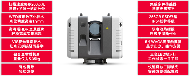 | 掃描速度每秒200萬點(diǎn),掃描+拍照一站兩分鐘 超高速掃描速度,比傳統(tǒng)掃描儀效率提高數(shù)倍,掃描+拍照,一站兩分鐘,單站作業(yè)時(shí)間短,即掃即走,減少掃描等待時(shí)間 ![]() | |