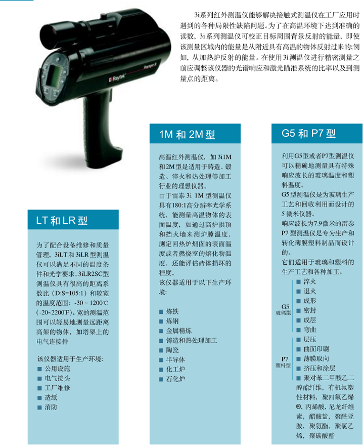 足工業(yè)上特殊的應(yīng)用。這些型號為遠(yuǎn)距離溫度高的被測目標(biāo)提供最佳的測溫性能,最高測量