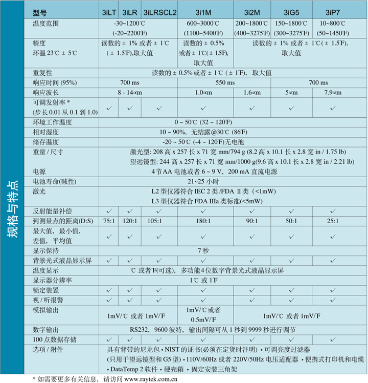 雷泰Raynger 3i 系列有多種溫度范圍、瞄準(zhǔn)方式、光學(xué)分辨率可選,并提供光譜響應(yīng)以滿