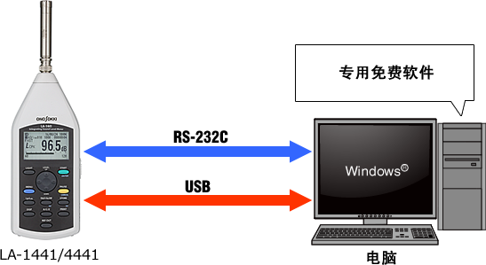 噪聲計(jì)本身可用RS-232C 或 USB電線與Windows電腦連接,使用專用的免費(fèi)軟件,可將測(cè)得的數(shù)據(jù),又快又好地傳送到電腦,或者由電腦對(duì)噪聲計(jì)進(jìn)行遙控操作。(不包括LA-1411)