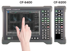 CF-9200/9400為集成便攜式FFT分析儀。測(cè)量分析時(shí)不需要其他電腦設(shè)備,通過(guò)本機(jī)的觸摸屏(靜電容型)以及功能按鍵即可完成所有操作。