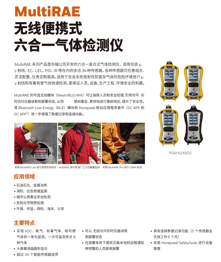 Multi RAE系列產(chǎn)品是華瑞公司開(kāi)發(fā)的六合一復(fù)合式氣體檢測(cè)儀, 適用包括x、y射線、EC、LEL、PID、IR等在內(nèi)的多達(dá)34種傳感器, 各種傳感器可任意組合、靈活配置,儀表定制度高。適用于在含未知放射性和復(fù)雜氣體的危險(xiǎn)環(huán)境進(jìn)行x、y射線和有毒有害氣體快速檢測(cè),是保證人員、設(shè)施、生產(chǎn)工程、環(huán)境安全的利器。