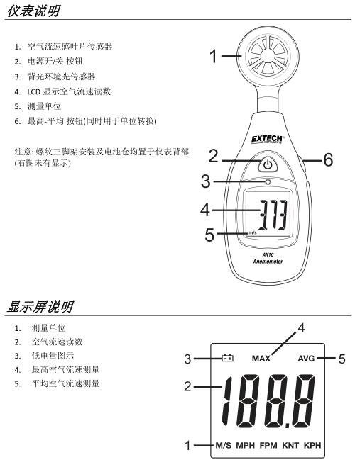 1. 隨時按下最高‐平均 按鈕可顯示已錄取之最高空氣流速讀數(shù)(最大值) 。該最高讀數(shù)為儀表啟動后所測量記錄之讀數(shù)。MAX 標(biāo)志會顯示于 LCD 頂部。