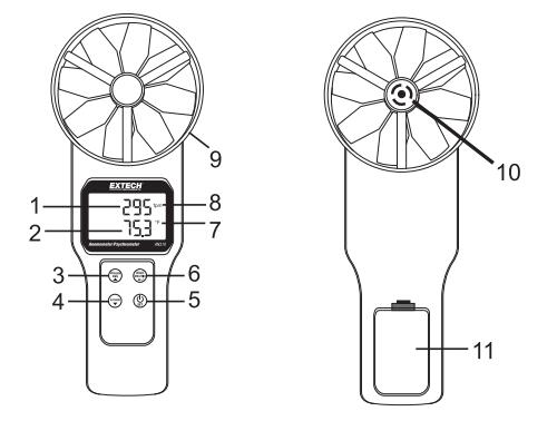 3. 在儀表盤上時(shí), 上部顯示器可以顯示空氣流速或相對(duì)濕度 (使用 u/模式按鈕切換。較低的顯示數(shù)字顯示氣流,露點(diǎn)溫度、濕球溫度或空氣溫度 (使用 l/模式按鈕滾動(dòng))。