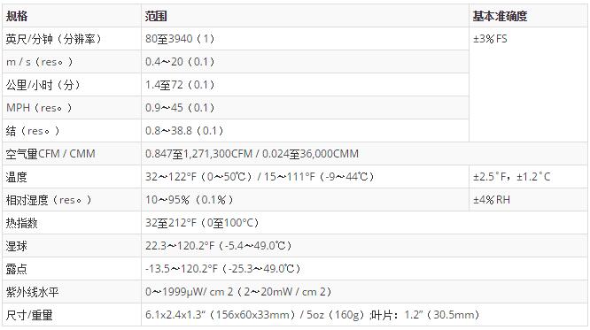 內(nèi)置傳感器可測量空氣流速,氣流,溫度,濕度,濕球,露點,熱指數(shù),風冷,大氣壓,高度和紫外線