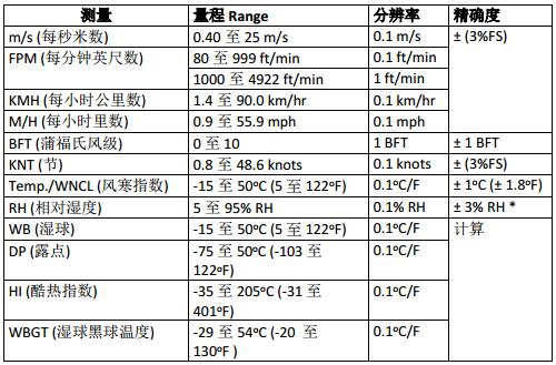 內(nèi)置多參數(shù)傳感器測量空氣速度,熱指數(shù),濕球溫度(WBGT),濕度,環(huán)境溫度,露點,濕球,溫度和風車