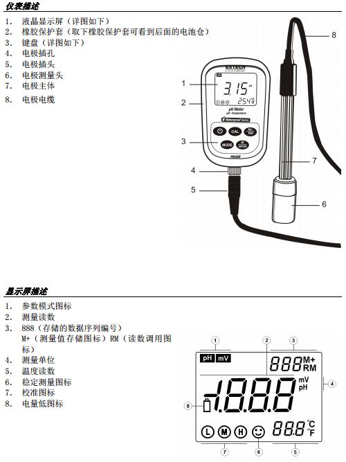 二、EXTECH PH300 儀表圖示 :