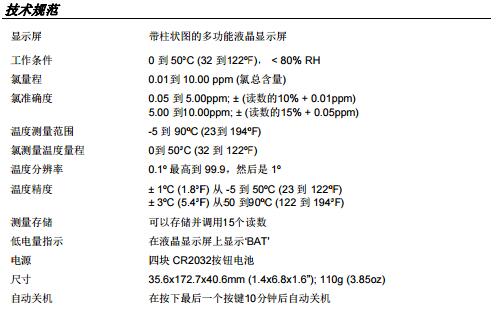 CL200 氯測試儀。CL200 是同類測量設(shè)備中的首款革新產(chǎn)品,可以直接讀取0.01 到 10.00ppm 的總氯含量。ExStik?所采用的電極方法獲得了美國環(huán)保局(EPA)批準(zhǔn),是一種廢水總氯含量達標(biāo)監(jiān)控的認可方法。在采用這種電極方法時,在測試之前必須添加片狀試劑。CL200的使用優(yōu)點包括:方便使用和維護、自我校準(zhǔn)和快速響應(yīng)。CL200 可同時顯示氯含量和溫度,內(nèi)存可存儲 15 個讀數(shù)。如果精心使用和維護,可保證多年的可靠服務(wù)。