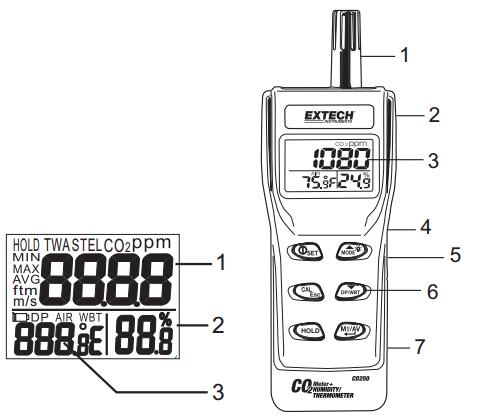 二、EXTECH C0250 儀表圖示 :