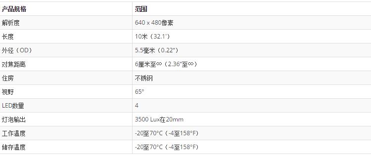 HDV-5CAM-10F是與HDV600 VideoScope系列一起使用的可選相機(jī)。這款具有長景深鏡頭的5.5mm相機(jī)頭,具有65°的視野。十米半剛性電纜長度。最小對焦距離為0.59英寸(15毫米)。