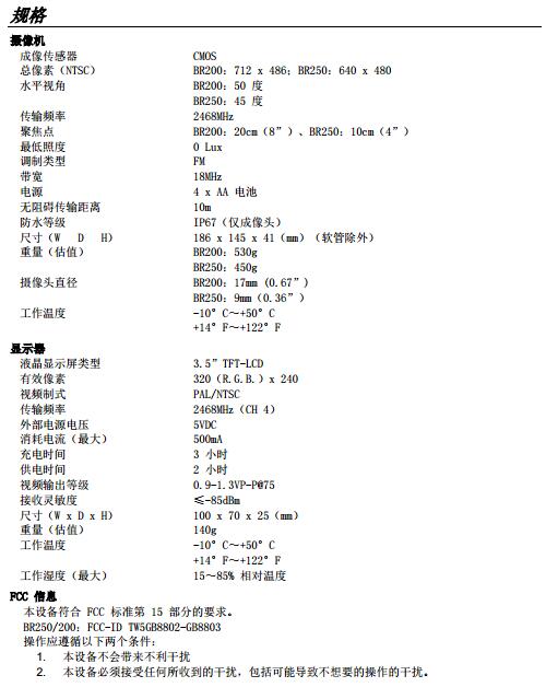 BR200 型(17mm 攝像頭)視頻內(nèi)窺鏡。該儀表是一款遠(yuǎn)程檢驗裝置。可用于檢查空間狹小的部位,并提供可以記錄的實時視頻和圖像。典型的適用范圍包括 HVAC(暖通空調(diào))檢驗、汽車檢驗、電纜敷設(shè)和機動車/船舶/飛機檢驗。該儀表在交付前均經(jīng)過完整測試,只要妥善使用,您便可常年享受其可靠服務(wù)。