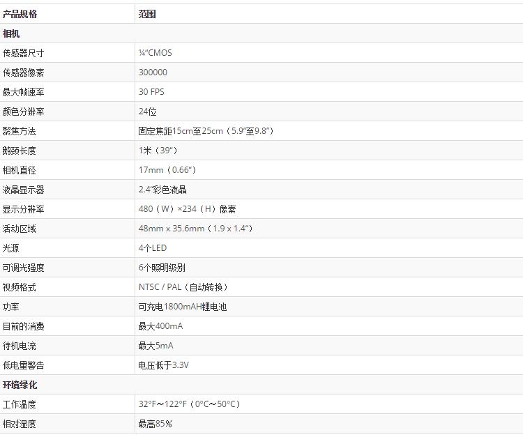 17mm直徑相機(jī)頭,帶有39“(1m)柔性鵝頸燈電纜保持配置形狀