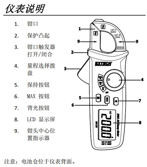 MA130 Extech 200A AC 迷你型鉗形表用于測量的交流電流的量程包括三個:2A、20A 和200A。該儀表在交付前均經(jīng)過完善測試及校準(zhǔn),只要妥善使用,將會使您常年享受其可靠服務(wù)。
