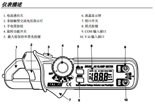 二、EXTECH MA150 儀表圖示 :