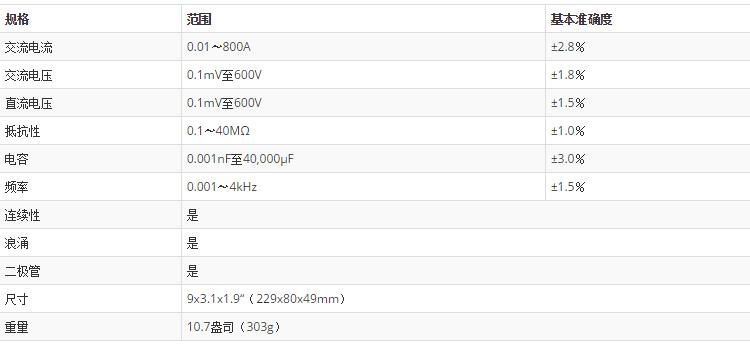 多功能表功能包括交流電流,交流/直流電壓,電阻,頻率,電容,二極管和連續(xù)性