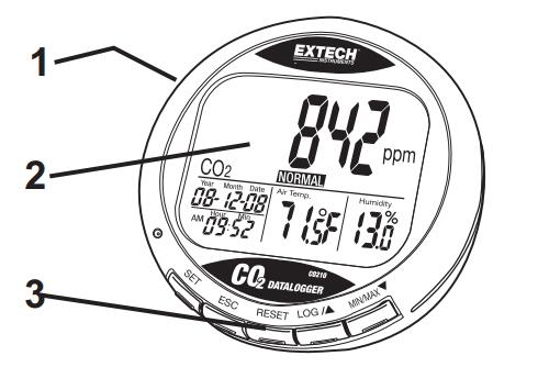 電表可以記錄二氧化碳的讀數(shù), 長時間環(huán)境的溫度和濕度監(jiān)測.內(nèi)存容量為15999磅 (5333 rh、溫度和二氧化碳記錄)。采樣率可從1秒到4小時59分鐘和59秒。選擇采樣率后, 按正常的2秒鐘的日志按鈕啟動日志記錄的模式。綠色 led 指示燈閃爍以指示記錄狀態(tài)和液晶屏主顯示器將在實時二氧化碳值和 "rec" 之間交替。較低的顯示器是實時溫度、濕度和時鐘。要終止數(shù)據(jù)記錄, 請按 esc 按鈕 "2 秒鐘。指示燈將停止閃爍lcd 主顯示器將在實時二氧化碳值和 "末端" 之間交替。按住再按 esc 按鈕2秒鐘, 它將返回到正常的測量模式。在日志記錄期間, 最小和最大回調繼續(xù)工作。每當激活新的日志記錄會話時, 將清除內(nèi)存。