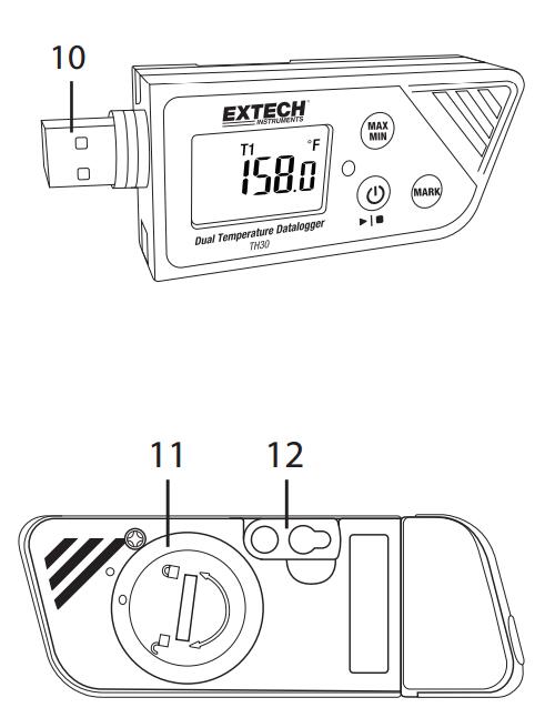 2. 數(shù)據(jù)記錄儀可連接外部溫度傳感器(僅 TH30)