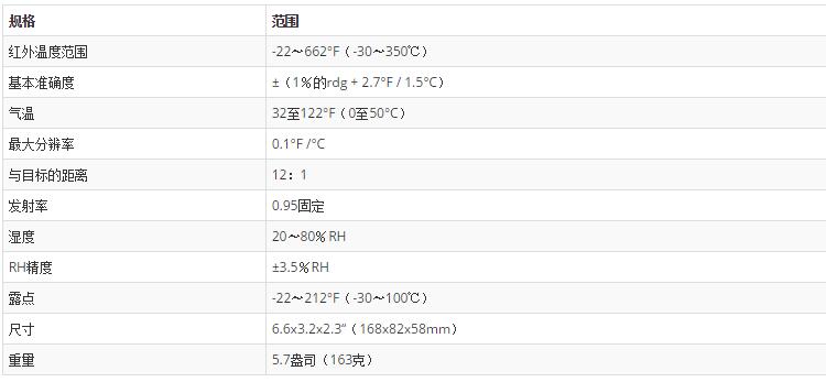 測(cè)量范圍:-22?662°F(-30?350℃)