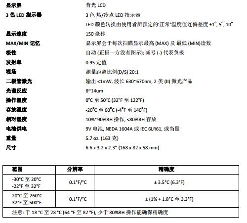 測(cè)量范圍:-58至500°F(-50至260°C)