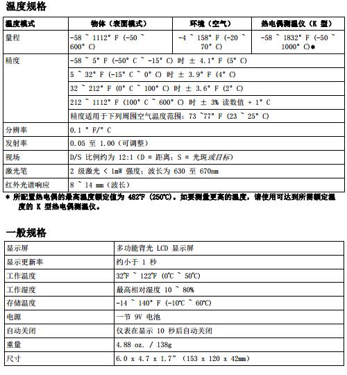 三、EXTECH IR267 規(guī)格特征 :